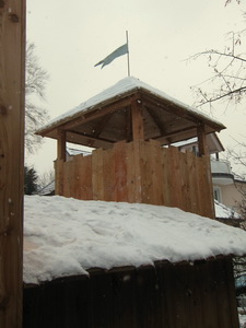Feind in Sicht! Den besten Überblick hat man natürlich vom Burgturm, den ein stolzer Wimpel ziert.