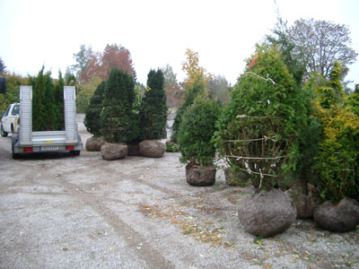 Einen Schwerpunkt bilden große immergrüne Solitärgehölze für die Verwendung als Sichtschutz.