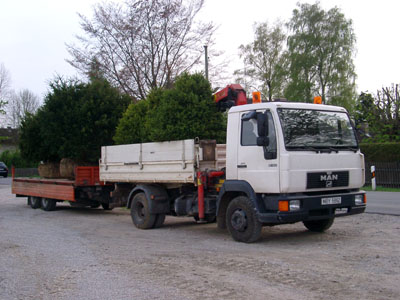LKW MAN 10-163 Krankipper mit Anhänger zum Transport von Maschinen und größeren Mengen Material.